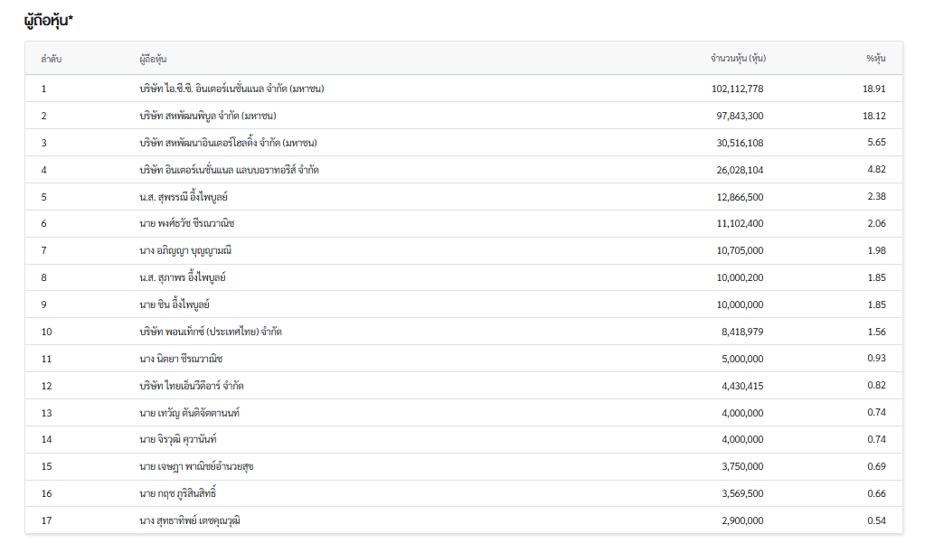 ภาพรวมข้อมูลผู้ถือหุ้น ณ วันที่ 17 มี.ค. 2568