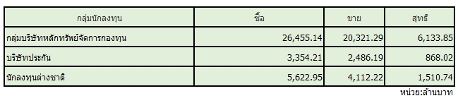 สมาคมตลาดตราสารหนี้ไทย รายงานภาพรวมตลาดตราสารหนี้ไทยประจำวันนี้ โดยมีมูลค่าการซื้อขายรวมทั้งวัน 112,049 ล้านบาท สะท้อนสภาพคล่องที่ยังคงอยู่ในระดับสูง เมื่อพิจารณาตามประเภทนักลงทุน พบว่ากลุ่มบริษัทหลักทรัพย์จัดการกองทุนรวมเป็นผู้ซื้อสุทธิสูงสุด 6,134 ล้านบาท ตามด้วยกลุ่มบริษัทประกันที่ซื้อสุทธิ 868 ล้านบาท ขณะที่นักลงทุนต่างชาติมีกระแสเงินลงทุนไหลเข้าสุทธิ 1,511 ล้านบาท จากการซื้อสุทธิทั้งจำนวน โดยไม่มีตราสารหนี้ที่นักลงทุนต่างชาติถือครองครบกำหนดอายุในวันนี้