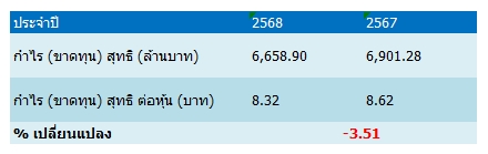 ทั้งนี้ ในภาวะที่เศรษฐกิจยังคงเปราะบาง บริษัทยังคงควบคุมค่าใช้จ่ายอย่างมีประสิทธิภาพ มีค่าใช่จ่ายในการดำเนินงานลดลงร้อยละ 2.6 จากปีก่อนหน้า กำไรต่อหุ้นขั้นพื้นฐาน (Basic earnings per share) สำหรับปี 2568 เท่ากับ 8.32 บาทต่อหุ้น ลดลงจาก 8.62 บาทต่อ หุ้นในปี 2567 และบริษัทมีอัตราผลตอบแทนต่อผู้ถือหุ้นเฉลี่ย (ROAE) อยู่ที่ร้อยละ 15.4