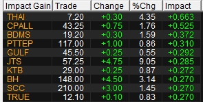 นายชัยพร น้อมพิทักษ์เจริญ กรรมการผู้จัดการ กิจการค้าหลักทรัพย์ บล.บัวหลวง กล่าวว่า ตลาดหุ้นไทยในช่วงเช้าปรับตัวเพิ่มขึ้นจากแรงซื้อหุ้นใหญ่ โดยเฉพาะแรงซื้อกลับหุ้นที่ราคาลงไปแรงในสัปดาห์ที่ผ่านมา เช่น CPALL BDMS และ BH เป็นต้น