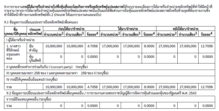 ทั้งนี้ ภายหลังจาก นางสาวสิริลักษณ์ เข้าซื้อหุ้น 88TH ส่งผลให้ถือหุ้นเพิ่มเป็น 27,000,000 หุ้น คิดเป็นสัดส่วน 12.7058% ของสิทธิออกเสียงทั้งหมดในกิจการ ส่งผลให้กลายเป็นถือหุ้นเป็นอันดับ 2 ของบริษัท จากเดิมถือหุ้นอยู่ที่ 10,000,000 หุ้น คิดเป็นสัดส่วน 4.7058%