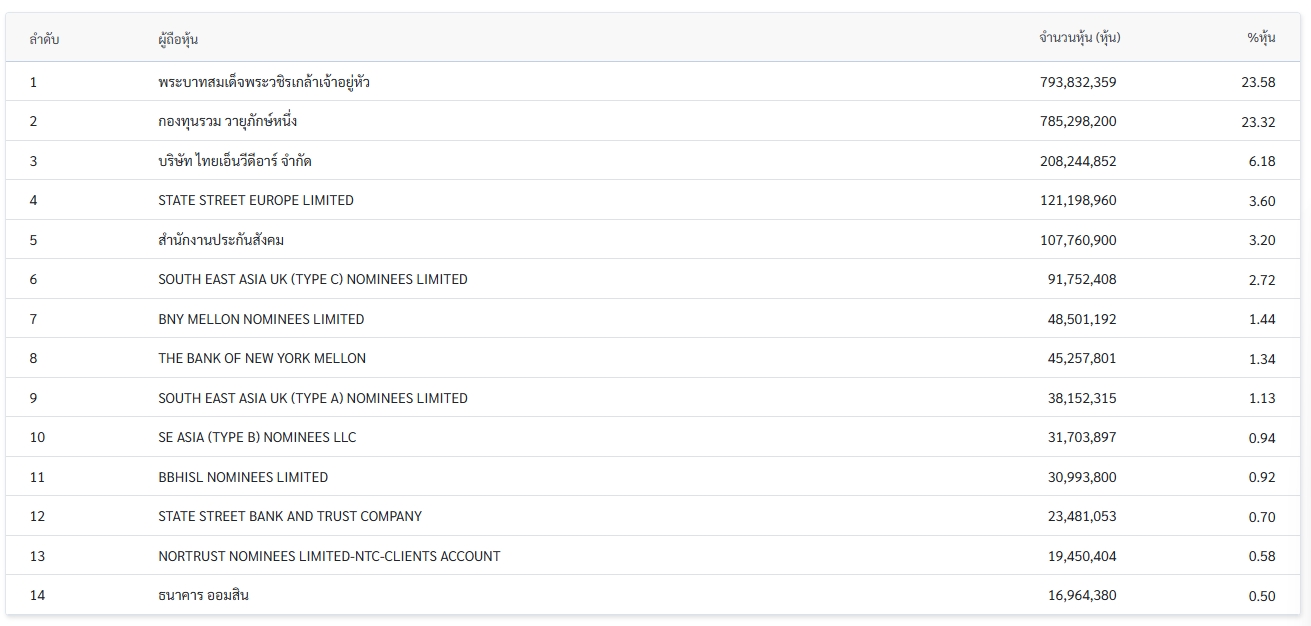 สำหรับภาพรวมรายชื่อผู้ถือหุ้นใหญ่ 14 อันดับ (ณ วันที่ 3 ก.ย. 68) มีดังนี้