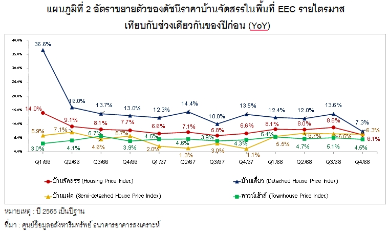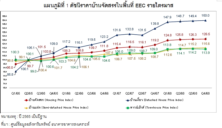 ดัชนีราคาบ้านจัดสรรจำแนกตามประเภทในพื้นที่ EEC พบว่า