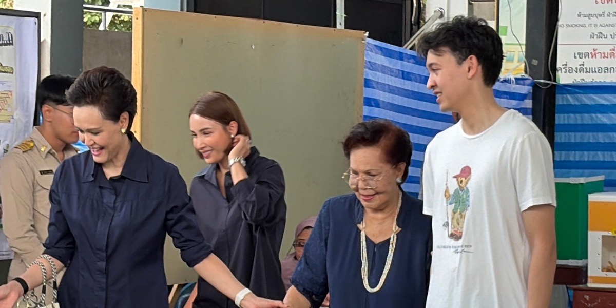 “ศุภจี สุธรรมพันธุ์” ควงครอบครัวใช้สิทธิเลือกตั้ง-ประชามติ หน่วยปากเกร็ด จ.นนทบุรี