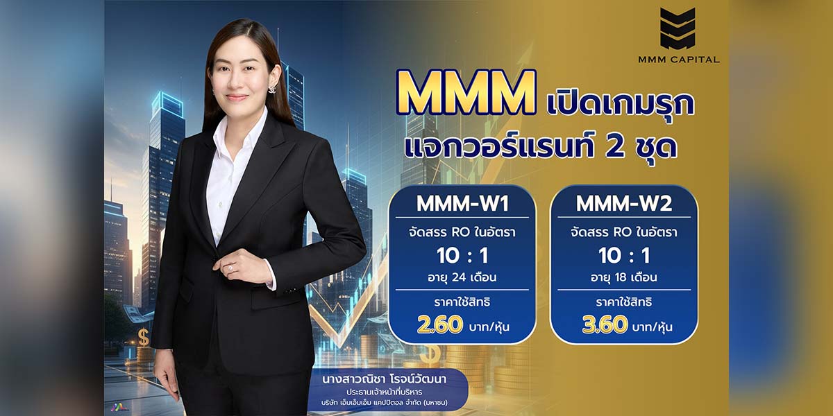 นางสาวณิชา โรจน์วัฒนา ประธานเจ้าหน้าที่บริหาร บริษัท เอ็มเอ็มเอ็ม แคปปิตอล จำกัด (มหาชน) หรือ MMM ผู้นำด้านตัวแทนการขายอสังหาริมทรัพย์ ภายใต้การให้บริการที่ปรึกษาด้านการขายและการตลาดแก่ผู้ประกอบการพัฒนาอสังหาฯ และซื้อขายอสังหาฯ แบบครบวงจร เปิดเผยว่า ที่ประชุมคณะกรรมการบริษัท มีมติอนุมัติให้เสนอต่อที่ประชุมผู้ถือหุ้นสามัญประจำปี 2569 เพื่อพิจารณาอนุมัติการออกและเสนอขายใบสำคัญแสดงสิทธิที่จะซื้อหุ้นสามัญของบริษัท จำนวน 2 ชุด ได้แก่ MMM-W1 และ MMM-W2 รวมทั้งสิ้น 72,599,996 หน่วย โดยจำนวนหุ้นที่จัดสรรไว้เพื่อรองรับการใช้สิทธิตามใบสำคัญแสดงสิทธิ ไม่เกิน 108,899,994 หุ้น คิดเป็นร้อยละ 30 ของหุ้นที่จำหน่ายได้แล้วทั้งหมดของบริษัทโดย จะกำหนดรายชื่อผู้ถือหุ้นที่มีสิทธิเข้าร่วมประชุมเพื่ออนุมัติการออก Warrant (Record Date) วันที่ 20 เดือนกุมภาพันธ์ 2569 และประชุมผู้ถือหุ้นวันที่ 23 เดือน มีนาคม 2569 นี้