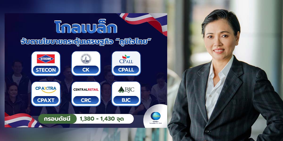 บล. โกลเบล็ก คาดดัชนี SET เคลื่อนไหว Sideway UP จับตาการจัดตั้งรัฐบาลใหม่ที่พรรคภูมิใจไทยขึ้นแท่นแกนนำ พร้อมนโยบายกระตุ้นเศรษฐกิจ ให้กรอบดัชนีอยู่ที่ 1,380-1,430 จุด แนะกลยุทธ์ลงทุน 2 ธีมเด็ด