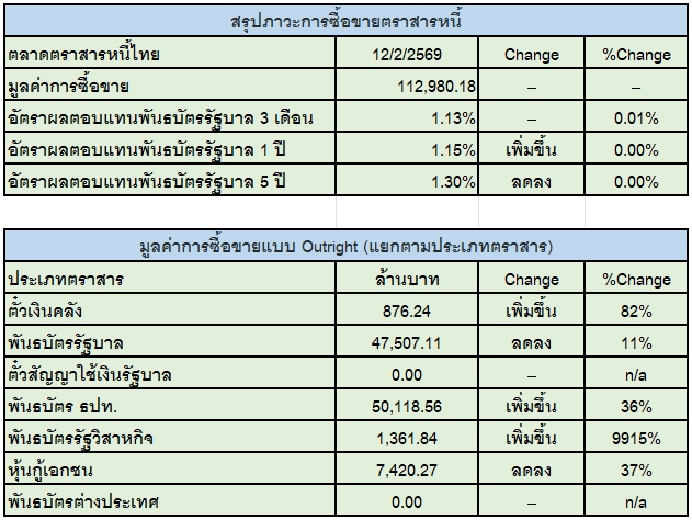 บริษัทหลักทรัพย์จัดการกองทุน ต่างชาติ และประกันประสานเสียงซื้อ “ตราสารหนี้ไทย” 2.7 หมื่นล้านบาท ขณะที่ Yield พันธบัตรอายุ 5 ปี ปิดที่ 1.3% ไม่มีการเปลี่ยนแปลงจากเมื่อวาน
