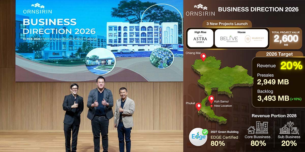 ORN เปิดแผนปี 69 ลุย 3 โครงการใหม่รวม 2.6 พันลบ. รุกตลาดสมุย เจาะเรียลดีมานด์-ต่างชาติ ชูมาตรฐาน EDGE มั่นใจกวาดยอดขาย 2,949 ลบ. พร้อมขยายรายได้ประจำ ดันรายได้รวมโต 20% วางเป้าธุรกิจหลัก 80% ภายในปี 71