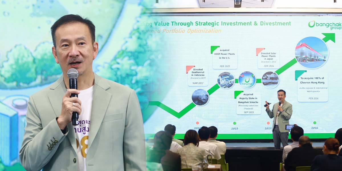 BCP เดินเกมรุกปูพรมความสำเร็จปี 69 จ่อปิดดีลยักษ์ซื้อกิจการ “เชฟรอนฮ่องกง” มูลค่า 8.3 พันล้านบาท กลางปีนี้ หวังต่อยอดธุรกิจ Trading-โลจิสติกส์ มั่นใจคืนทุนไวภายใน 7 ปี ดันยอดขายและกำไรเติบโตแกร่งสวนกระแสตลาดผันผวน พร้อมตั้งเป้าปี 73 ดัน EBITDA แตะ 1 แสนล้าน ด้านรายได้ 1 ล้านล้านบาท