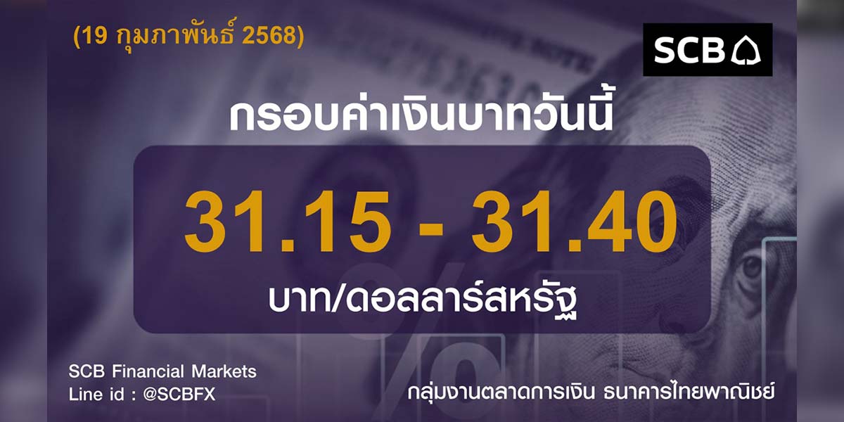 กลุ่มงานตลาดการเงิน ธนาคารไทยพาณิชย์ (SCB Financial Markets) วันนี้เคลื่อนไหวในกรอบ 31.15-31.40 บาท/ดอลลาร์