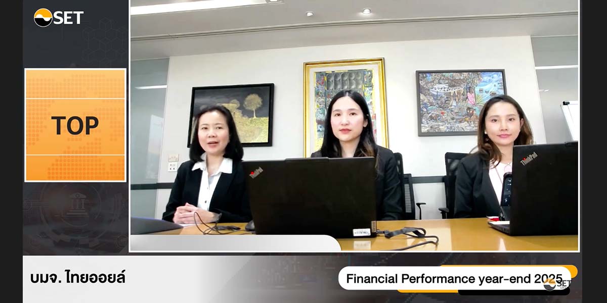 นางสาวญดา เผือกประพันธ์ นักลงทุนสัมพันธ์ บริษัท ไทยออยล์ จำกัด (มหาชน) หรือ TOP เปิดเผยข้อมูลภาพรวมธุรกิจของบริษัทผ่านงาน Opportunity Day ซึ่งจัดโดยตลาดหลักทรัพย์แห่งประเทศไทย (ตลท.) เมื่อวันที่ 19 ก.พ. 2569 ว่า ภาพรวมผลการดำเนินงานในปี 2568 บริษัทมีกำไรสุทธิ 14,584 ล้านบาท (คิดเป็นกำไรต่อหุ้น 6.53 บาท) ปรับตัวเพิ่มขึ้นจากปีก่อน 4,625 ล้านบาท สาเหตุหลักเกิดจากการรับรู้กำไรจากการต่อรองราคา (Negative Goodwill) ก้อนใหญ่ จากการที่บริษัท PT Chandra Asri Petrochemical Tbk (CAP) เข้าซื้อกิจการ Aster Polymer Solution ในสิงคโปร์ ช่วงไตรมาสที่ 2 และ 4 รวมกว่า 7,400 ล้านบาท