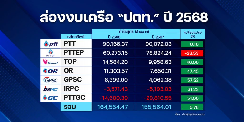 “เครือปตท.” ฟาดกำไรปี 68 ทะลุ 1.64 แสนล้านบาท! PTT แตะ 9 หมื่นลบ.–GPSC โตแรง 57%