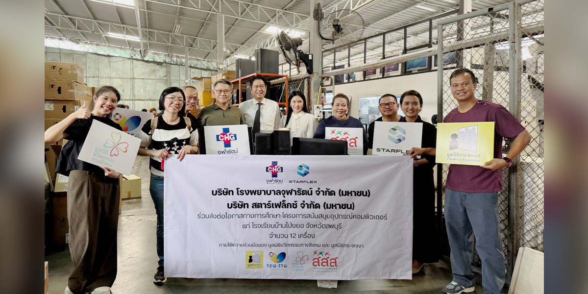 นายสมโภชน์ วัลยะเสวี ประธานเจ้าหน้าที่บริหาร บริษัท สตาร์เฟล็กซ์ จำกัด (มหาชน) หรือ SFLEX พร้อมด้วย นายอภิชาติ การุณกรสกุล ประธานมูลนิธินวัตกรรมทางสังคม ร่วมกับ บริษัท โรงพยาบาลจุฬารัตน์ จำกัด (มหาชน) และมูลนิธิกระจกเงา เดินหน้าส่งเสริมการศึกษาและพัฒนาศักยภาพเยาวชนไทย ผ่านโครงการสนับสนุนอุปกรณ์คอมพิวเตอร์ จำนวน 12 เครื่อง ให้แก่โรงเรียนบ้านโป่งยอ จังหวัดลพบุรี เพื่อยกระดับคุณภาพการเรียนรู้ การศึกษา ทั้งในด้านดิจิทัล สื่อออนไลน์ รวมไปถึงการประยุกต์ใช้เทคโนโลยีอย่างสร้างสรรค์ ซึ่งจะช่วยให้นักเรียนสามารถเข้าถึงแหล่งความรู้ได้อย่างรวดเร็ว และมีประสิทธิภาพ