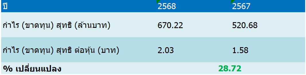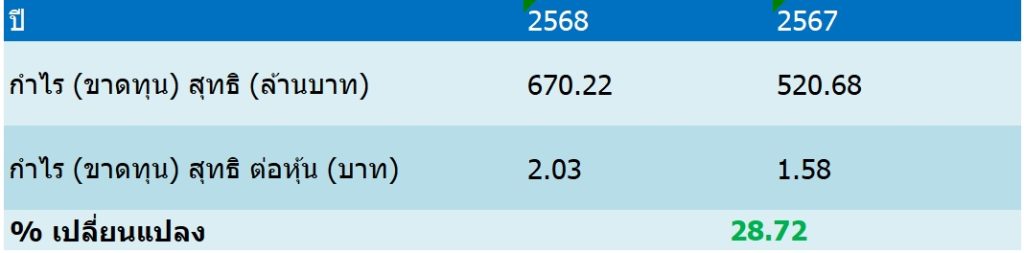 พร้อมกันนี้ ที่ประชุมคณะกรรมการบริษัทเมื่อวันที่ 23 กุมภาพันธ์ 2569 ได้มีมติอนุมัติการจ่ายเงินปันผลเป็นเงินสดให้แก่ผู้ถือหุ้นสามัญ ในอัตรา 1.22 บาทต่อหุ้น ทั้งนี้ ได้กำหนดวันที่ไม่ได้รับสิทธิปันผล (XD) ในวันที่ 28 เม.ย.2569 และบริษัทมีกำหนดจ่ายเงินปันผลดังกล่าวให้แก่ผู้ถือหุ้นในวันที่ 22 พฤษภาคม 2569