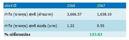 สำหรับการจ่ายเงินปันผล คณะกรรมการบริษัทมีมติเมื่อวันที่ 25 ก.พ. 2569 อนุมัติจ่ายเงินปันผลเป็นเงินสดจากงวดดำเนินงานวันที่ 1 ก.ค. 2568 ถึงวันที่ 31 ธ.ค. 2568 และกำไรสะสม ในอัตราหุ้นละ 0.40 บาท โดยกำหนดวันที่ไม่ได้รับสิทธิปันผล (XD) วันที่ 7 พ.ค. 2569 กำหนดรายชื่อผู้มีสิทธิได้รับปันผล (Record Date) วันที่ 8 พ.ค. 2569 และกำหนดจ่ายเงินปันผลในวันที่ 28 พ.ค. 2569