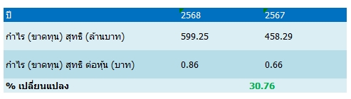 ทั้งนี้ ที่ประชุมคณะกรรมการบริษัทฯ เมื่อวันที่ 26 กุมภาพันธ์ 2569 มีมติอนุมัติจ่ายปันผลเป็นเงินสด จากผลการดำเนินงานงวดวันที่ 1 มกราคม – 31 ธันวาคม 2568 ให้แก่ผู้ถือหุ้นสามัญในอัตรา 0.25 บาทต่อหุ้น (จากมูลค่าที่ตราไว้ 0.50 บาท) โดยกำหนดวันที่ไม่ได้รับสิทธิปันผล (XD) ในวันที่ 6 พฤษภาคม 2569 กำหนดรายชื่อผู้มีสิทธิได้รับปันผล (Record date) ในวันที่ 7 พฤษภาคม 2569 และกำหนดจ่ายเงินปันผลในวันที่ 21 พฤษภาคม 2569