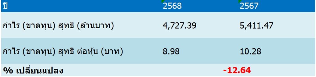 บริษัท ผลิตไฟฟ้า จำกัด (มหาชน) หรือ EGCO รายงานผลประกอบการปี 68 มีกำไรสุทธิลดลง ดังนี้