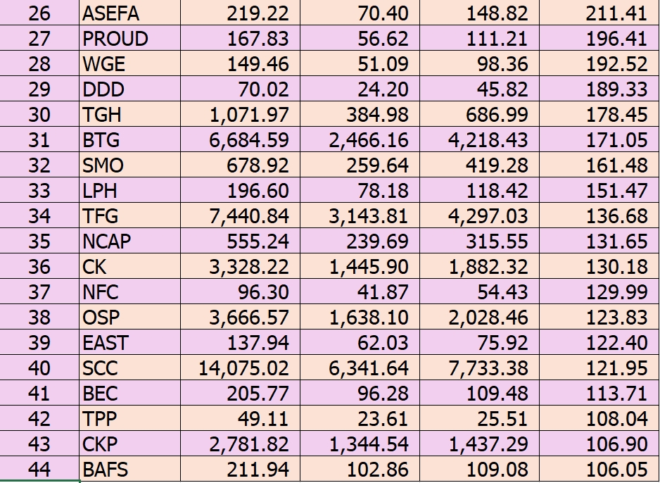 ขนทัพ 45 บริษัทจดทะเบียนใน SET โชว์งบปี 2568 มีกำไรสุทธิเติบโตเกิน 100% จากปีก่อน นำโดย PYLON, SEAFCO, CWT, MGC และ GULF สะท้อนการฟื้นตัวในหลายอุตสาหกรรม ทั้งก่อสร้าง ยานยนต์ และพลังงาน จากแรงหนุนรายได้ที่เพิ่มขึ้นควบคู่การบริหารต้นทุนอย่างมีประสิทธิภาพ