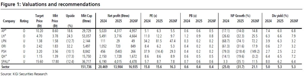บล.เคจีไอ (ประเทศไทย) ประเมินกำไรกลุ่มอสังหาฯ ปี 2569 ฟื้นตัว 21% แตะ 1.7 หมื่นล้านบาท จากยอดโอนคอนโดใหม่เพิ่มขึ้นและการตั้งสำรองและการตัดจำหน่ายที่คาดว่าจะลดลง พร้อมชู LH และ AP เป็นหุ้นเด่นของกลุ่ม