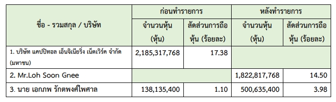 ทั้งนี้ การทำรายการดังกล่าวส่งผลให้โครงสร้างการถือหุ้นของบริษัทมีการเปลี่ยนแปลงตามรายละเอียดที่เกี่ยวข้อง