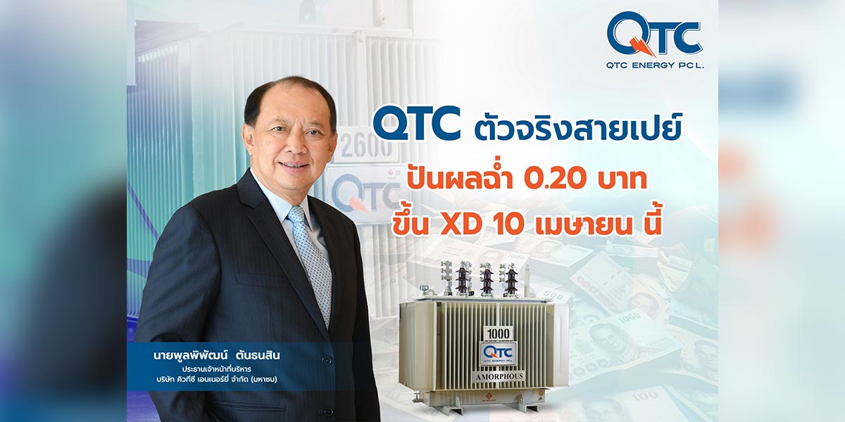 QTC ตอกย้ำนโยบายหุ้นปันผล จ่ายเงินปันผล 0.20 บาทต่อหุ้น ขึ้นเครื่องหมายไม่ได้รับสิทธิปันผล 10 เมษายน 2569 พร้อมรุกธุรกิจรับดีมานด์ดาต้าเซ็นเตอร์และยานยนต์ไฟฟ้า หนุนงานในมือเกิน 1,000 ล้านบาท