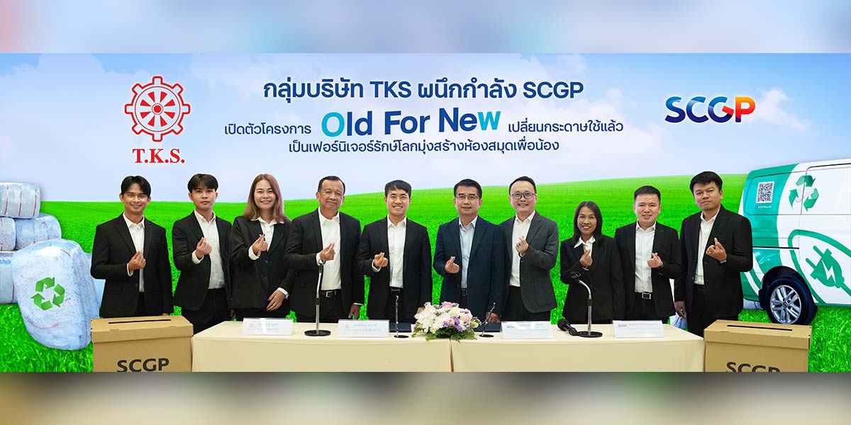 บริษัท ที.เค.เอส. เทคโนโลยี จำกัด (มหาชน) หรือ TKS เปิดเผยว่า บริษัทได้ร่วมกับ SCGP RECYCLE เดินหน้าโครงการ “Old For New” เพื่อบริหารจัดการทรัพยากรกระดาษใช้แล้วอย่างเป็นระบบ โดยตั้งเป้าหมายจัดเก็บกระดาษจากสำนักงานและกระบวนการผลิตเข้าสู่กระบวนการรีไซเคิลไม่น้อยกว่า 60 ตันต่อปี ภายใต้แนวคิดเศรษฐกิจหมุนเวียน หรือ Circular Economy พร้อมตั้งเป้าลดการปล่อยก๊าซเรือนกระจก 340,412.76 kgCO2eq ต่อปี