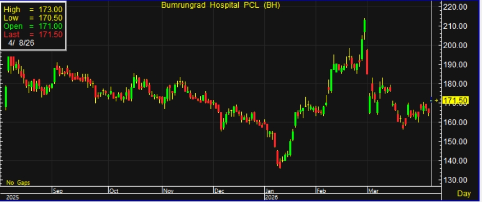 ด้านบริษัทหลักทรัพย์ กรุงศรี จำกัด (มหาชน) ประเมินราคาเหมาะสมของหุ้น BH ที่ระดับ 170.00 บาท โดยมองว่าบริษัทมีแนวโน้มได้รับปัจจัยหนุนเชิงบวก หากสถานการณ์ความขัดแย้งในตะวันออกกลางเริ่มผ่อนคลาย เนื่องจาก BH มีสัดส่วนรายได้จากผู้ป่วยในภูมิภาคตะวันออกกลางสูงที่สุด คิดเป็นประมาณร้อยละ 25 ของรายได้รวม