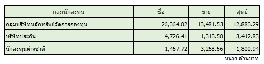 ทางด้านกระแสเงินลงทุนของนักลงทุนต่างชาติในวันนี้ พบว่ามีเงินทุนไหลออกสุทธิ (Net Outflow) รวม 1,804 ล้านบาท ซึ่งเกิดจากการขายสุทธิ 1,801 ล้านบาท และมีตราสารหนี้ที่ถือครองโดยนักลงทุนต่างชาติครบกำหนดอายุ (Expired) อีกจำนวน 3 ล้านบาท