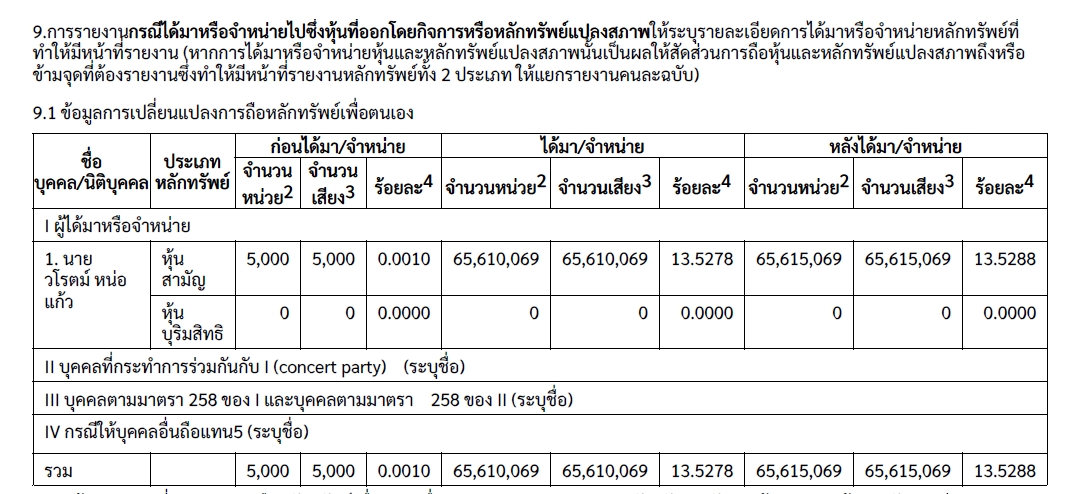 ทั้งนี้ ก่อนการทำรายการดังกล่าว นายวโรตม์ หน่อแก้ว ถือครองหุ้น EMPIRE จำนวน 5,000 หุ้น คิดเป็นสัดส่วน 0.0010% ของสิทธิออกเสียงทั้งหมดของกิจการ ภายหลังการทำรายการ ส่งผลให้ถือครองหุ้นรวมจำนวน 65,615,069 หุ้น คิดเป็นสัดส่วน 13.5288% ของสิทธิออกเสียงทั้งหมดของกิจการ และขึ้นเป็นผู้ถือหุ้นรายใหญ่ที่สุดของบริษัท