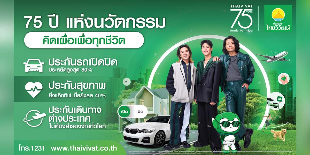 โดยในโอกาสก้าวสู่ปีที่ 75 บริษัทฯ จึงเดินหน้าต่อกับแนวคิด “คิดเผื่อเพื่อทุกชีวิต” พร้อมนำเสนอนวัตกรรมประกันภัยที่ยืดหยุ่นและเข้าถึงได้ ทั้งประกันรถเปิดปิดที่จ่ายตามการใช้งานจริง ประกันสุขภาพ Active Health ที่ให้รางวัลกับการดูแลตัวเอง และประกันภัยการเดินทางต่างประเทศที่ครอบคลุมทุกสถานการณ์ ควบคู่ไปกับโครงการ Thaivivat Caring Forward ที่ต่อยอดคุณค่าความคุ้มครองสู่สังคม เพื่อยกระดับบริการประกันภัย สู่โซลูชันที่ช่วยคนไทยควบคุมค่าใช้จ่าย พร้อมรับมือกับทุกความเสี่ยงอย่างมั่นใจ และคุ้มค่าในทุกด้านของชีวิต