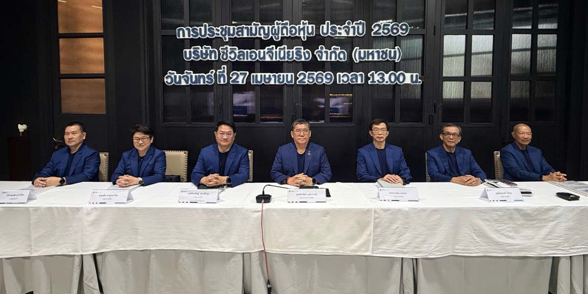 CIVIL จัดประชุมผู้ถือหุ้นปี 2569 รับทราบผลประกอบการปี 2568 พร้อมเผยทิศทางปีนี้ เดินหน้ารับรู้รายได้จาก Backlog 13,578 ล้านบาท เตรียมเข้าร่วมโครงการ JUMP+ ยกระดับศักยภาพองค์กร ควบคู่บริหารต้นทุน กระแสเงินสด