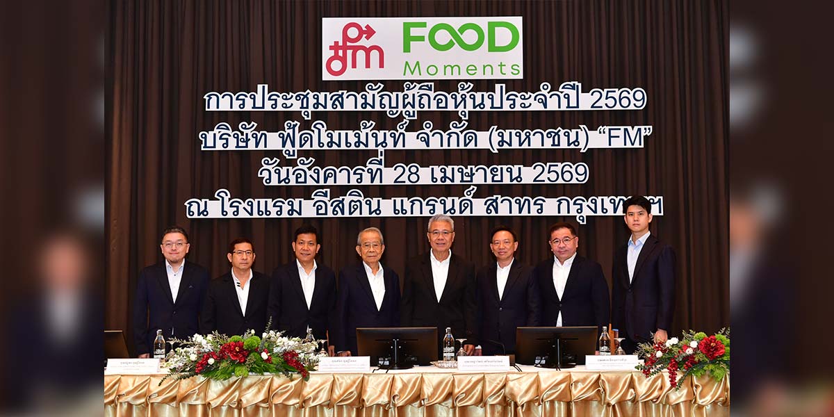 นายเจษฎาวัฒน์ เพรียบจริยวัฒน์ ประธานกรรมการ นายสนิท ดุษฎีโหนด ประธานกรรมการบริหาร นายณัฐพล ดุษฎีโหนด ประธานเจ้าหน้าที่บริหาร นายเชฏฐพล ดุษฎีโหนด รองประธานเจ้าหน้าที่บริหาร และนายสุเมธ มาสิลีรังสี ประธานเจ้าหน้าที่ฝ่ายการเงิน พร้อมด้วยคณะกรรมการ บริษัท ฟู้ดโมเม้นท์ จำกัด (มหาชน) หรือ FM ร่วมประชุมสามัญผู้ถือหุ้นประจำปี 2569 (AGM) โดยผู้ถือหุ้นอนุมัติแผนการจ่ายเงินปันผลเพิ่มเติมจากผลการดำเนินงานงวดครึ่งปีหลัง 2568 ในอัตรา 0.20 บาทต่อหุ้น รวม 197.57 ล้านบาท และเตรียมขึ้นเครื่องหมาย XD วันที่ 7 พฤษภาคม 2569 ซึ่งผู้ถือหุ้นเตรียมรับเงินปันผลเข้าพอร์ตในวันที่ 22 พฤษภาคมนี้