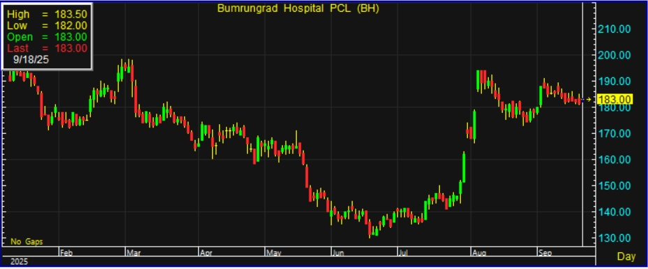 อย่างไรก็ตาม สัญญาณการฟื้นตัวรายได้ ก.ย. 2568 ที่กลับมาในทุกโรงพยาบาลหลักที่จดทะเบียนใน SET นำโดยคนไข้ไทย ขณะที่คนไข้ต่างชาติเราประเมินมีโอกาสเห็น Upside > Downside ทั้งฝั่งตะวันออกกลาง ซึ่งกลุ่มกดดันหลักคูเวต ปัจจุบันเหลือคนไข้ไม่มาก แต่มีโอกาสเห็นสัญญาณบวกจากการที่ 9 ร.พ. ไทยเดินทางไปเยือนคูเวตช่วงสัปดาห์นี้ รวมถึงการที่หลายแห่งเริ่มขยายฐานลูกค้าชาติอื่นๆ ทดแทน ให้ราคาเป้าหมาย 217 บาท