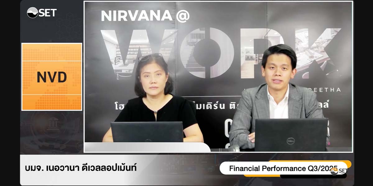 นางสาววราภรณ์ ธนาภรณ์ไพบูลย์ รักษาการประธานเจ้าหน้าที่ บริษัท เนอวานา ดีเวลลอปเม้นท์ จำกัด (มหาชน) หรือ NVD เปิดเผยผลประกอบการไตรมาส 3 ปี 2568 ในงาน Opportunity Day ที่จัดโดยตลาดหลักทรัพย์แห่งประเทศไทย เมื่อวันที่ 21 พฤศจิกายน 2568 ว่าบริษัทมีรายได้รวม 404 ล้านบาท เพิ่มขึ้น 15% จากช่วงเดียวกันของปีก่อนที่ 352 ล้านบาท