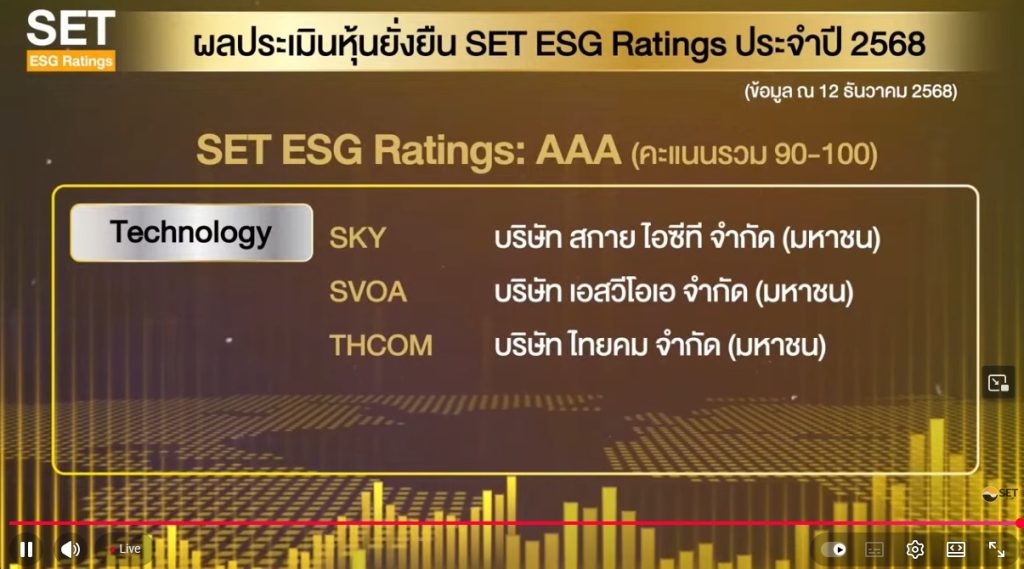 “SKY” คว้า ESG Rating ระดับ AAA ปี 2568 คะแนนนำกลุ่มเทคโนโลยี