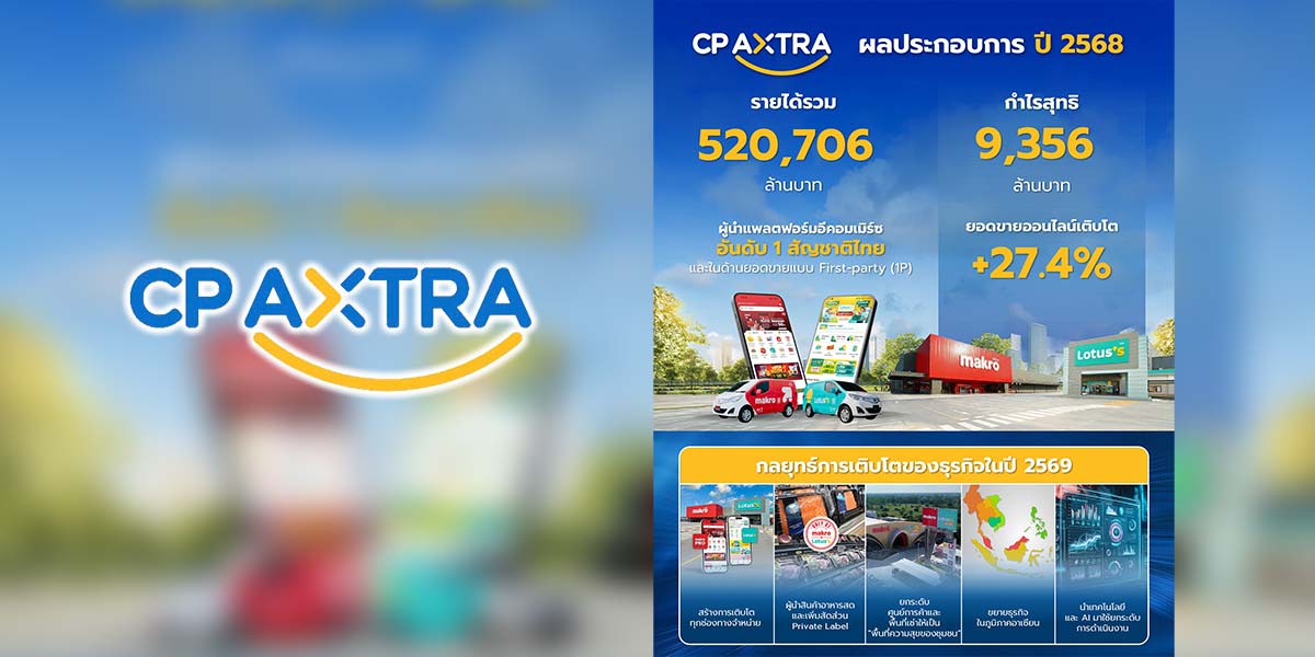 บริษัท ซีพี แอ็กซ์ตร้า จำกัด (มหาชน) หรือ CPAXT ผู้ดำเนินธุรกิจค้าส่งค้าปลีก แม็คโคร-โลตัส เผยผลประกอบการปี 2568 ด้วยรายได้รวม 520,706 ล้านบาท และมีกำไรสุทธิ 9,356 ล้านบาท โดยได้รับแรงหนุนจากยอดขายกลุ่มสินค้าอาหารสด ซึ่งเป็นจุดแข็งของบริษัทฯ ที่ขยายตัวอย่างต่อเนื่อง ควบคู่กับการเติบโตของสินค้าภายใต้แบรนด์ของบริษัทฯ (Private Label) ซึ่งช่วยสร้างความแตกต่างและหนุนภาพรวมรายได้ ให้แข็งแกร่งยิ่งขึ้น