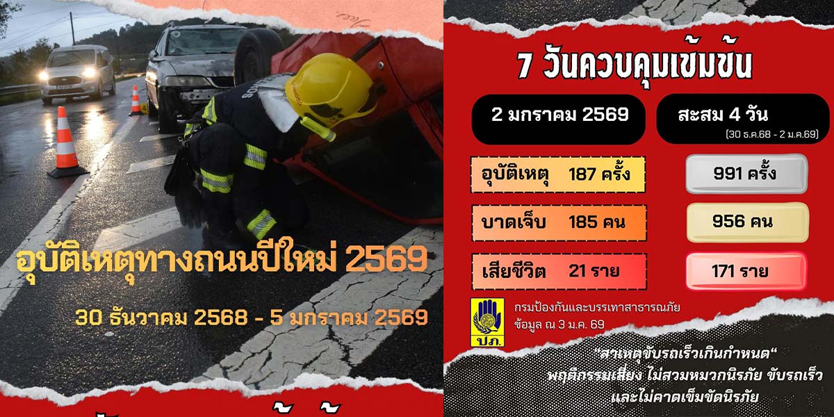 “7 วันอันตรายปีใหม่” 4 วัน ดับ 171 ราย เหตุขับเร็ว-เมาแล้วขับมากสุด