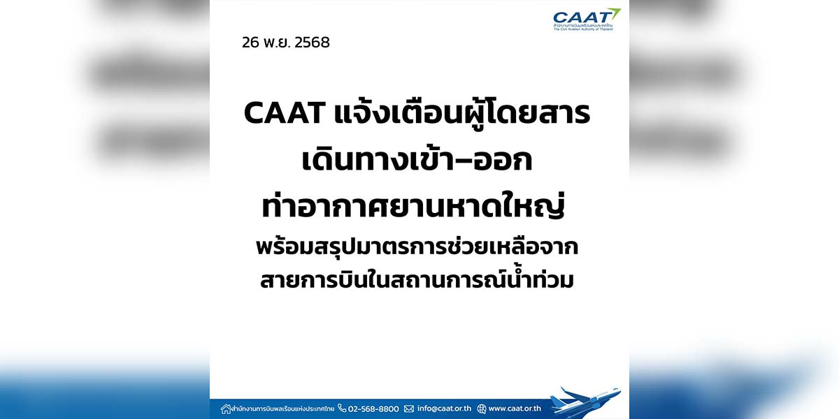 CAAT ย้ำให้ผู้โดยสารตรวจสอบมาตรการของแต่ละสายการบินโดยตรง และติดต่อผ่าน Call Center เว็บไซต์ หรือช่องทางโซเชียลของสายการบินก่อนวางแผนการเดินทาง