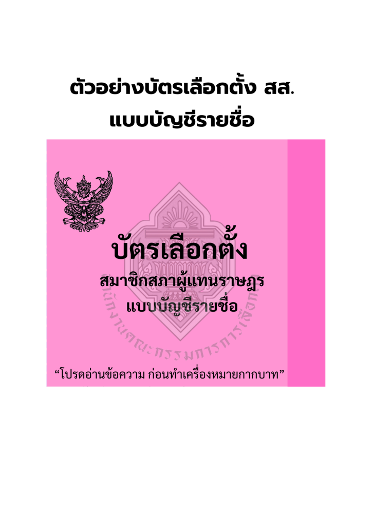 ตัวอย่างบัตรเลือกตั้ง สส.เขต