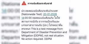 มาตามนัด ปภ. ทดสอบระบบแจ้งเตือนภัย Cell Broadcast ระดับประเทศ พบสัญญาณเข้าถึงประชาชนเป็นวงกว้าง ขณะที่ยังมีโทรศัพท์มือถือบางส่วนไม่ได้รับการแจ้งเตือน