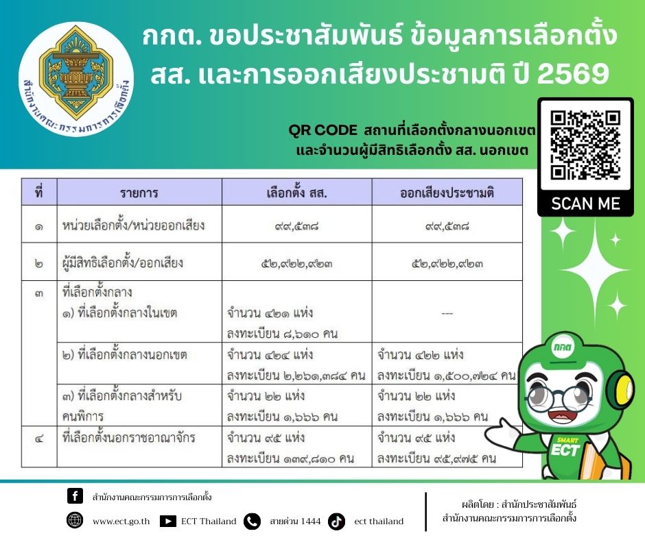 วันที่ 1 กุมภาพันธ์ 2569 ผู้มีสิทธิเลือกตั้ง จะได้รับ บัตรลงคะแนนเพียง 2 ใบ เพื่อเลือกสมาชิกสภาผู้แทนราษฎร (สส.) รวม 500 คน แบ่งเป็น สส.เขต 400 คน และ สส.บัญชีรายชื่อ 100 คน