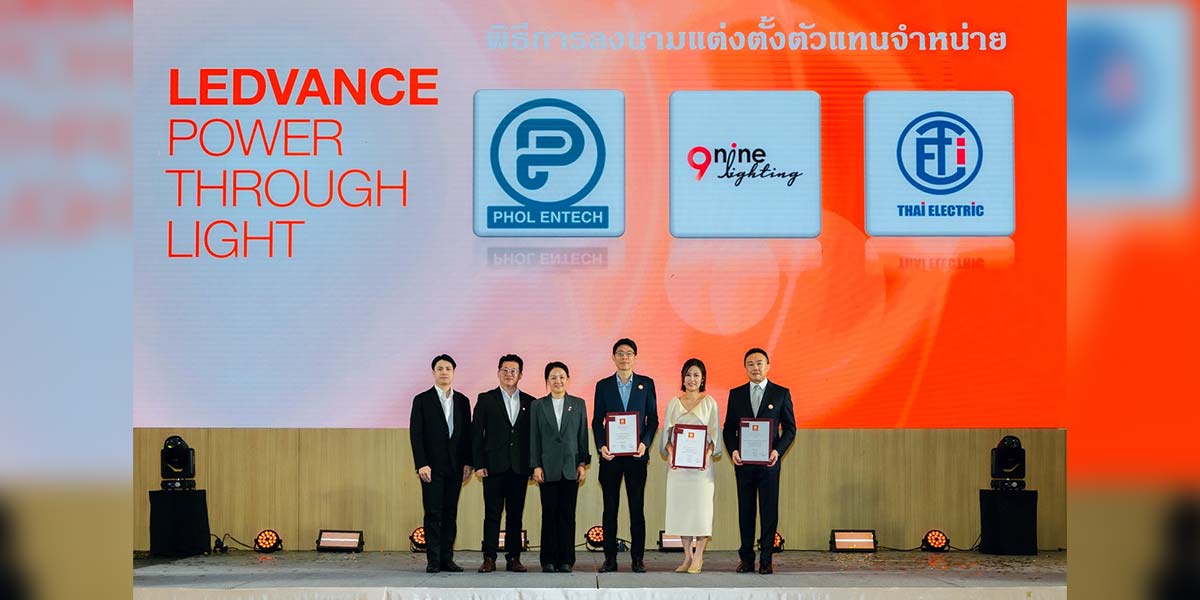 LEDVANCE ผนึกกำลัง 3 พันธมิตร Phol Entech, Nine Lighting และ Thai Electricity International ลงนามตัวแทนจำหน่ายระดับภูมิภาค–ประเทศ เสริมเครือข่ายทั่วไทย ตอกย้ำวิสัยทัศน์ “พลังผ่านแสง” ชูโซลูชันประหยัดพลังงานสร้างความเชื่อมั่นตลาด