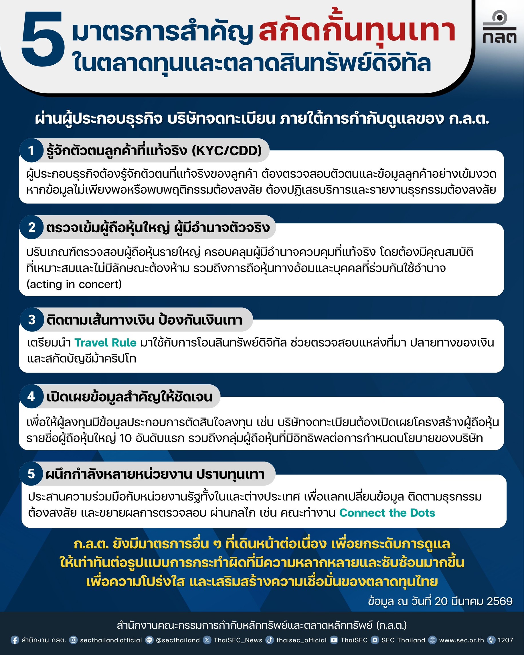 ก.ล.ต. เดินหน้า 5 มาตรการ “สกัดกั้นทุนเทา” ครอบคลุม “ตลาดทุน–สินทรัพย์ดิจิทัล”