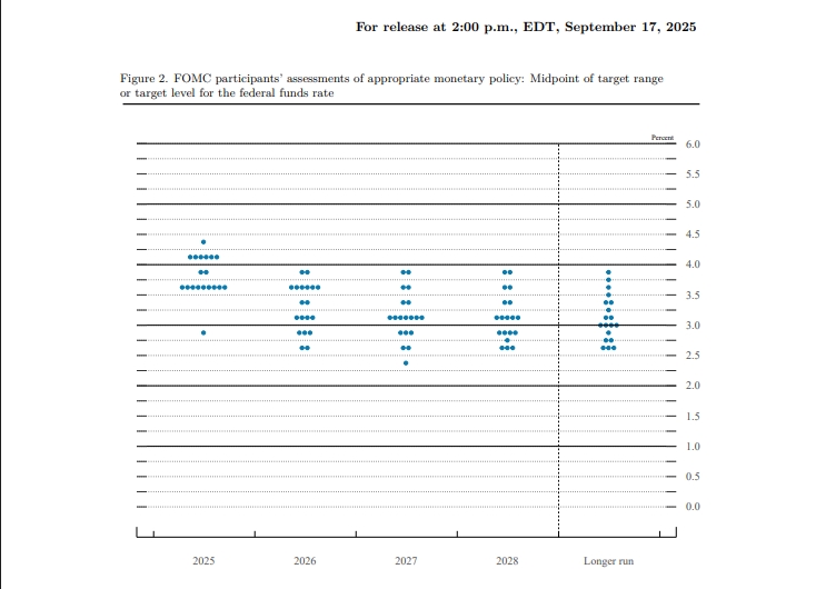 เจอโรม พาวเวลล์ (Jerome Powell) ประธานเฟด แถลงว่า ในรายงาน Summary of Economic Projections (SEP) สมาชิก FOMC ประเมินว่า อัตราดอกเบี้ยนโยบายที่เหมาะสมจะอยู่ที่ 3.6% สิ้นปี 2568 (ค.ศ. 2025), 3.4% สิ้นปี 2569 (ค.ศ. 2026) และ 3.1% สิ้นปี 2570 (ค.ศ. 2027) ซึ่งต่ำกว่าคาดการณ์ในเดือนมิถุนายนประมาณ 0.25% ทั้งนี้ พาวเวลล์ ย้ำว่า การคาดการณ์เหล่านี้เป็นเพียงการประเมิน ไม่ใช่แผนตายตัวของคณะกรรมการ และนโยบายการเงินไม่ได้ถูกกำหนดเส้นทางไว้ล่วงหน้า