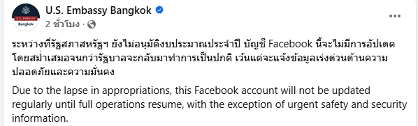 สหรัฐฯ เข้าสู่ภาวะชัตดาวน์ครั้งแรกในรอบ 7 ปี หลังวุฒิสภาเดโมแครต โหวตคว่ำร่างงบชั่วคราวที่รีพับลิกันเสนอ เหตุไร้มาตรการคุ้มครองด้านสุขภาพ ข้าราชการนับแสนเตรียมถูกพักงาน หน่วยงานรัฐหลายแห่งหยุดทำการ