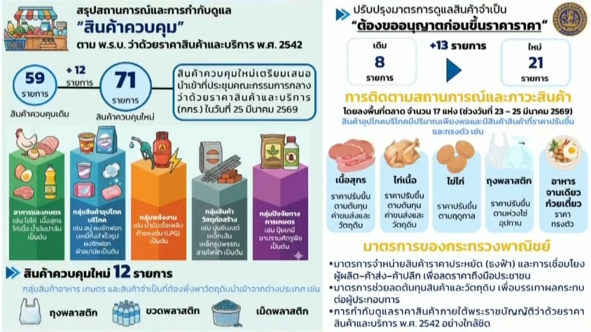โฆษกกระทรวงพาณิชย์ เผย กกร. จ่อเพิ่ม “สินค้าควบคุม” จาก 59 เป็น 71 รายการ ย้ำตรวจตลาดทั่วประเทศ สินค้ายังเพียงพอ ลั่นกักตุนเจอโทษหนัก