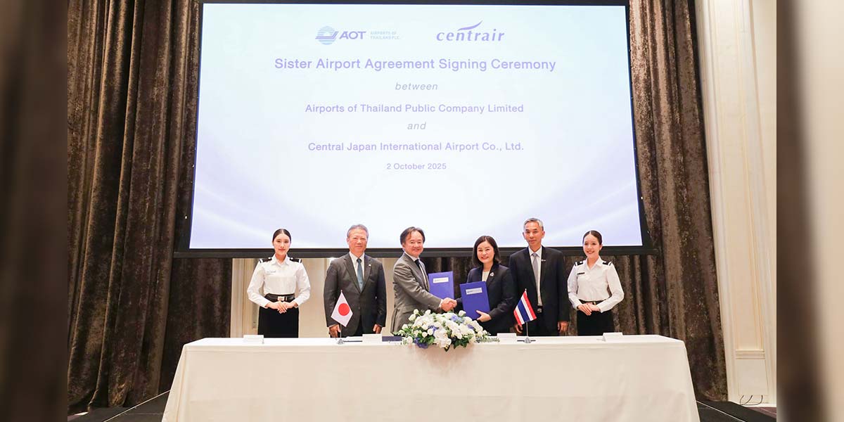 ผู้สื่อข่าวรายงานว่า เมื่อวันที่ 2 ตุลาคม 2568 ที่ผ่านมา บริษัท ท่าอากาศยานไทย จำกัด (มหาชน) หรือ AOT ร่วมลงนามในบันทึกข้อตกลงความร่วมมือระหว่างท่าอากาศยาน (Sister Airport Agreement : SAA) กับ Central Japan International Airport Co., Ltd. (CJIAC) ซึ่งเป็นองค์กรผู้บริหารท่าอากาศยานนานาชาติชูบุ เซ็นแทรร์ (Chubu Centrair International Airport: NGO) เมืองนาโงยะ ประเทศญี่ปุ่น โดยมีนางสาวปวีณา จริยฐิติพงศ์ รักษาการผู้อำนวยการใหญ่ AOT และ Mr. Hironori Kagohashi ตำแหน่ง President & CEO, CJIAC ร่วมพิธีลงนามในบันทึก SAA พร้อมด้วยผู้บริหารระดับสูงของ AOT และคณะผู้แทน CJIAC ร่วมเป็นสักขีพยานในพิธีลงนาม