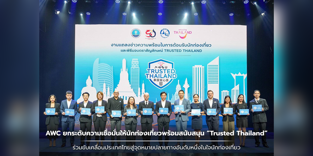 ทั้งนี้ AWC ในฐานะผู้พัฒนาอสังหาริมทรัพย์ชั้นนำที่มุ่งตอบสนองไลฟ์สไตล์แบบครบวงจร ได้ผนวกมาตรฐานของตราสัญลักษณ์ “Trusted Thailand” เข้าเป็นส่วนหนึ่งในการขับเคลื่อนคุณภาพและบริการ โดยความร่วมมือนี้สอดคล้องกับความมุ่งมั่นของ AWC ในการมอบประสบการณ์ที่ปลอดภัย มีคุณภาพ และเชื่อถือได้ ณ สถานประกอบการในเครือทั้งหมด (ทั้งโรงแรม และศูนย์การค้า) เพื่อร่วมยกระดับภาพลักษณ์ประเทศไทยให้เป็นจุดหมายปลายทางอันดับหนึ่ง (Top of Mind Destination) ในใจนักท่องเที่ยวจีน รวมถึงนักท่องเที่ยวทั่วโลก