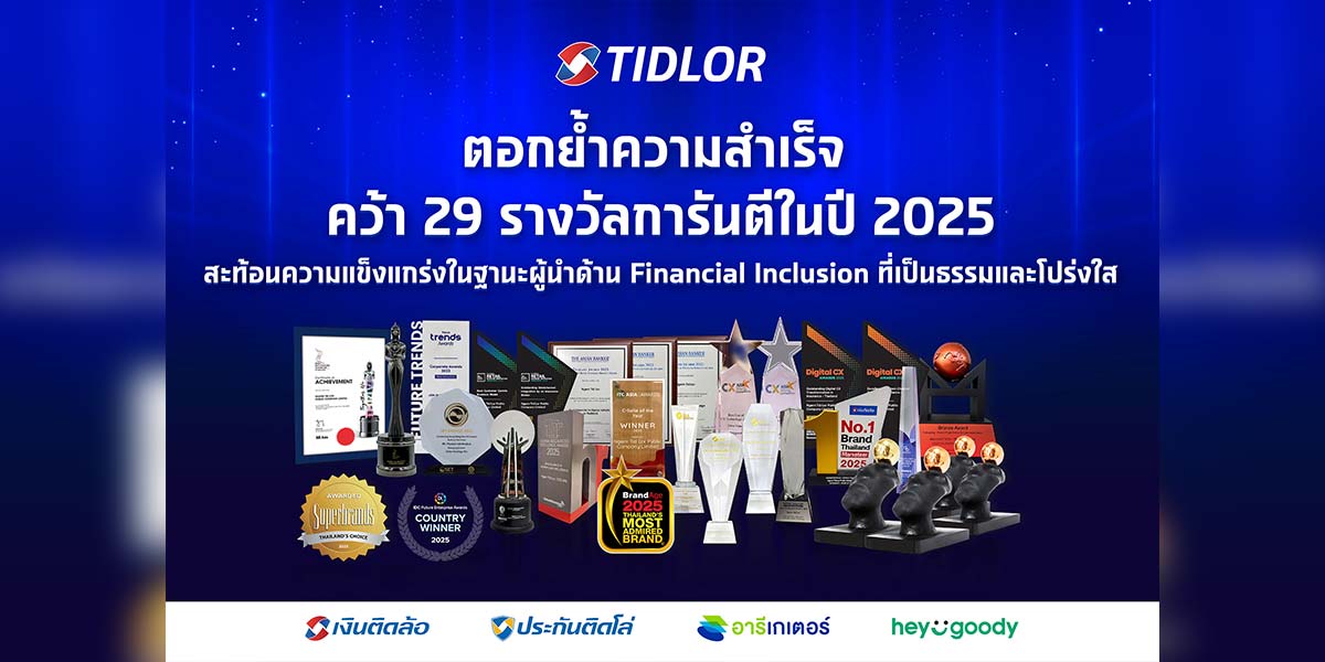 TIDLOR ตอกย้ำความเป็นผู้นำธุรกิจการเงิน คว้า 29 รางวัลจากเวทีระดับประเทศและเอเชียในปี 2568 สะท้อนความแข็งแกร่งของแบรนด์ นวัตกรรม และการดำเนินธุรกิจอย่างเป็นธรรม โปร่งใส และยั่งยืน