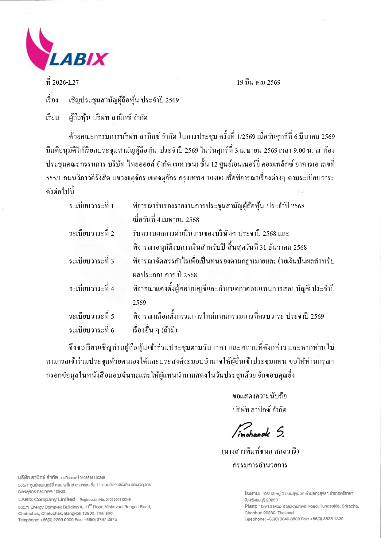 บริษัท ลาบิกซ์ จำกัด เชิญประชุมสามัญผู้ถือหุ้นประจำปี 2569 บริษัท ลาบิกซ์ จำกัด เชิญประชุมสามัญผู้ถือหุ้นประจำปี 2569 19 มี.ค. 2569 Share Facebook Twitter Line TagsLABIX ลาบิกซ์ 19 มี.ค. 2569 Share Facebook Twitter Line Share Facebook Twitter Line